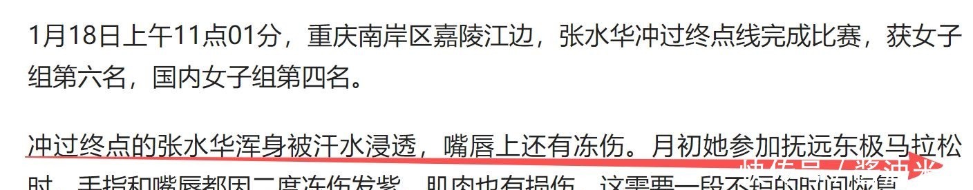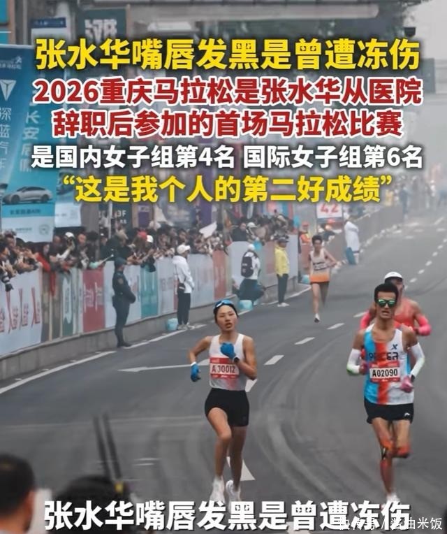 张水华的丈夫王岢回应嘴角发黑是月初去哈尔滨跑抚远马拉松时冻伤的。