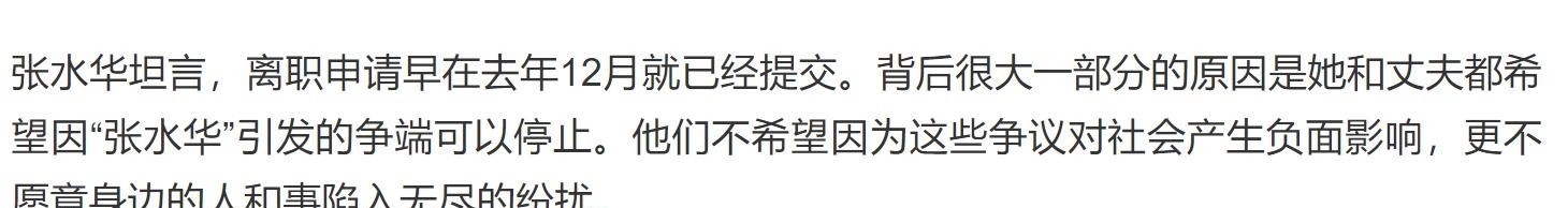 而在这背后很大一部分的原因是她和丈夫都希望因张水华引发的争端可以停止。